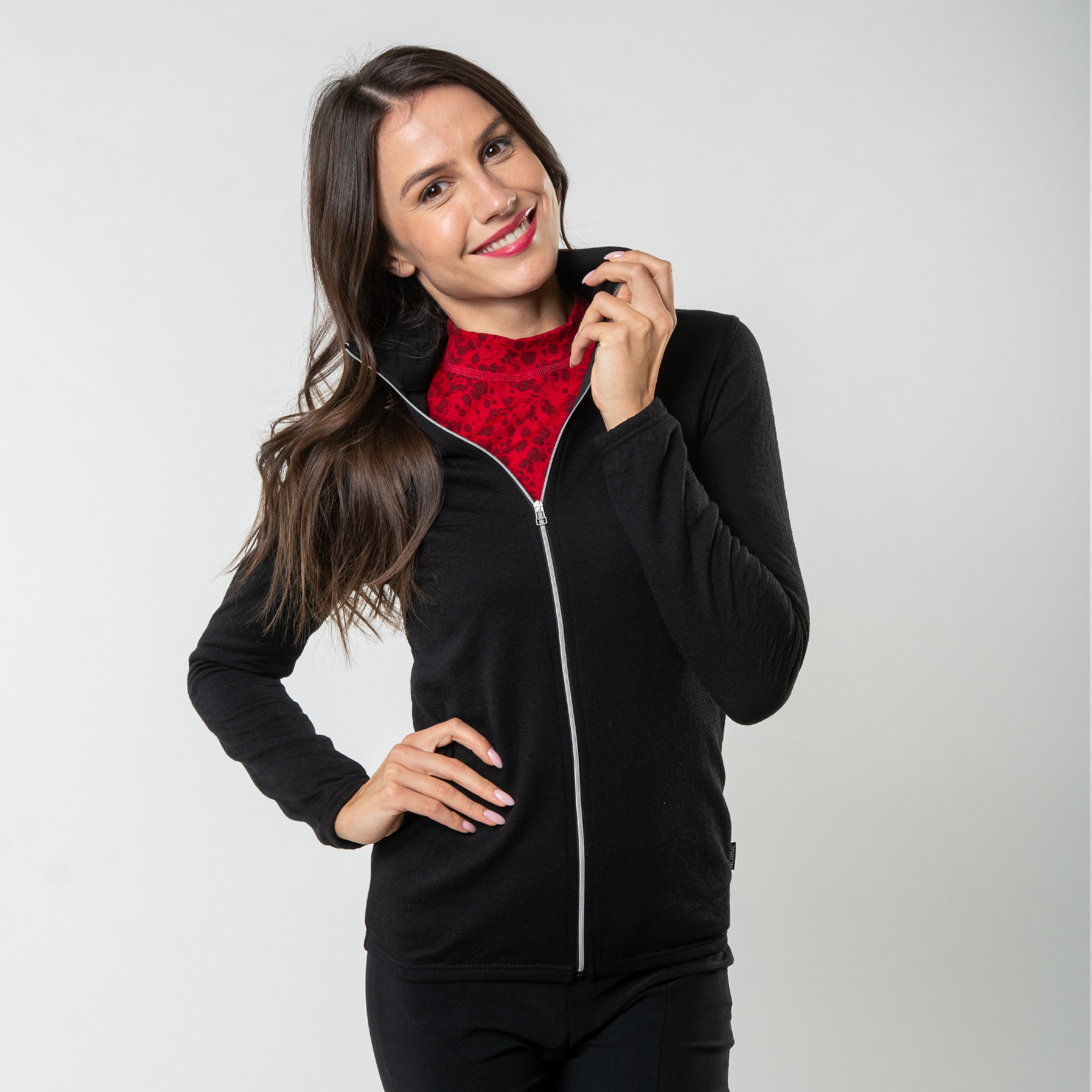 Călduros, moale și în același timp cu un design plăcut. Tricotul dublu stratificat Merino Moira este unul dintre cele mai bine vândute produse. Acesta combină designul spectaculos al modelului tricotat cu confortul termic și o finețe incredibilă, de care vă veți îndrăgosti. Stratul superior este format din cea mai delicată lână Merino, cu o grosime de 16,5 microni, cu proprietăți termoizolante excelente. O parte interioară din cele mai fine microfibre separă stratul superior de lână de piele. Prin urmare, este perfect și pentru doamnele care consideră că lâna 100% direct pe corp nu este confortabilă. Este perfect ca un prim sau al doilea strat de îmbrăcăminte și datorită modelului jacquard impresionant arată bine nu numai în timpul sportului, ci și în timpul purtării zilnice.