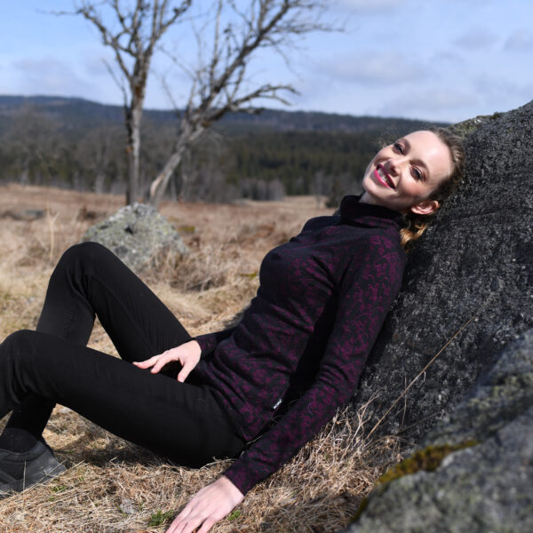 Călduros, moale și în același timp cu un design plăcut. Tricotul dublu stratificat Merino Moira este unul dintre cele mai bine vândute produse. Acesta combină designul spectaculos al modelului tricotat cu confortul termic și o finețe incredibilă, de care vă veți îndrăgosti. Stratul superior este format din cea mai delicată lână Merino, cu o grosime de 16,5 microni, cu proprietăți termoizolante excelente. O parte interioară din cele mai fine microfibre separă stratul superior de lână de piele. Prin urmare, este perfect și pentru doamnele care consideră că lâna 100% direct pe corp nu este confortabilă. Este perfect ca un prim sau al doilea strat de îmbrăcăminte și datorită modelului jacquard impresionant arată bine nu numai în timpul sportului, ci și în timpul purtării zilnice.