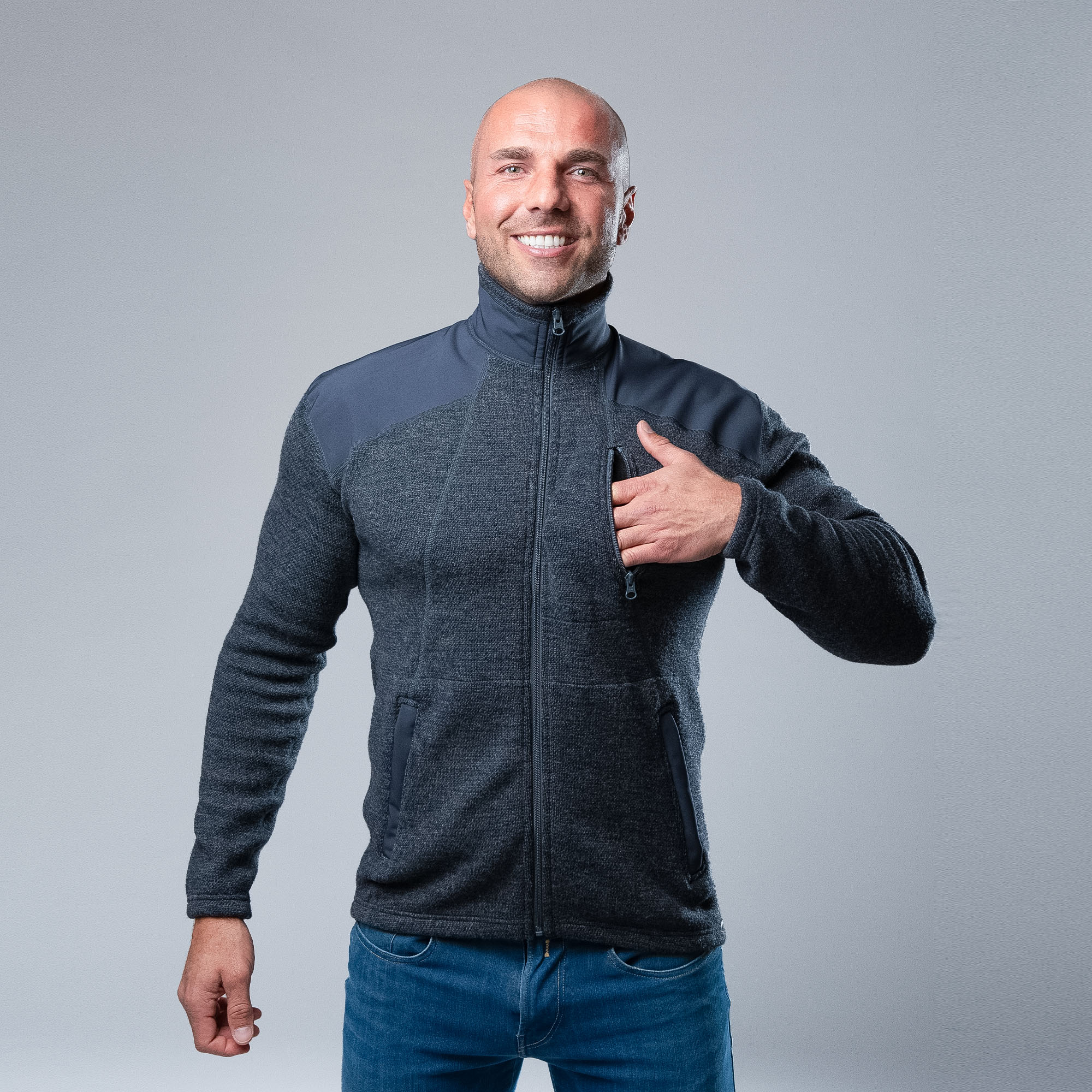 Pulover din merino cu fermoar, pentru bărbați, MERINO MOIRA HEAVY