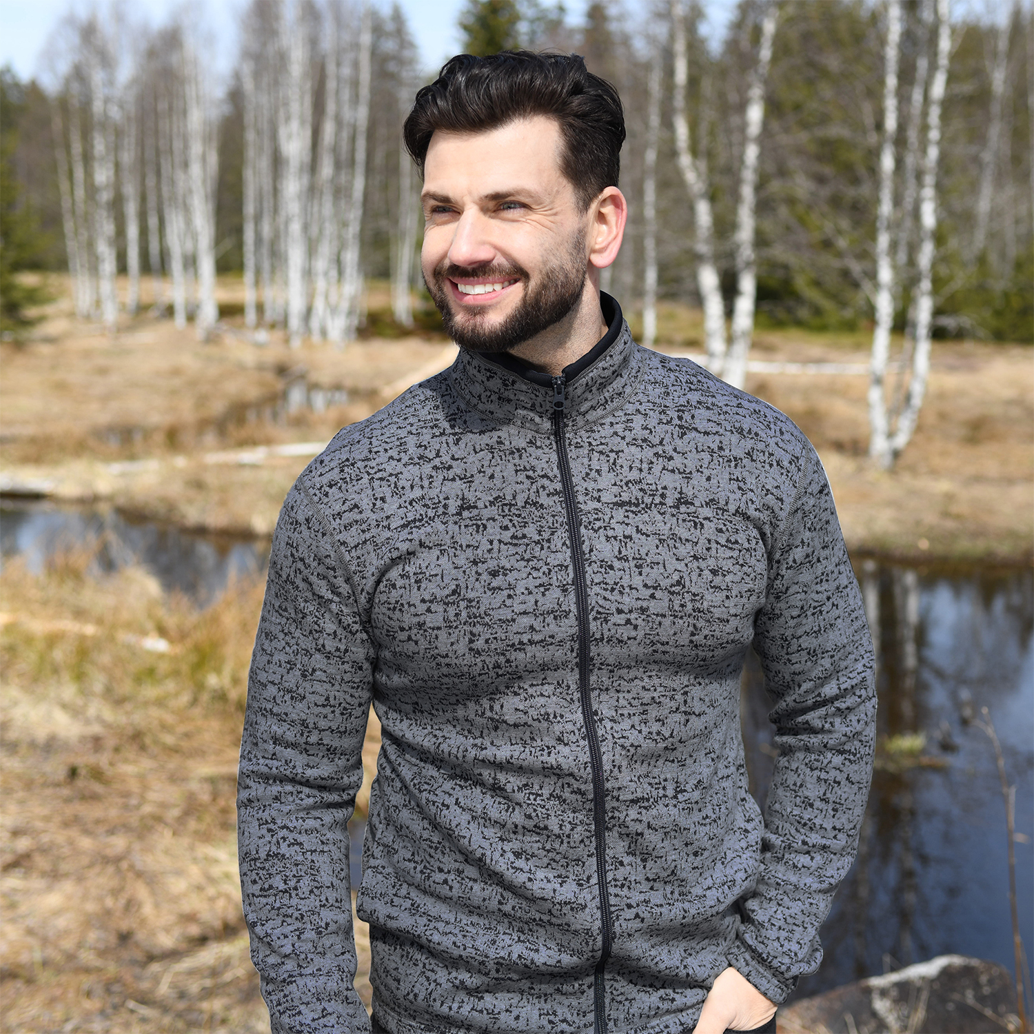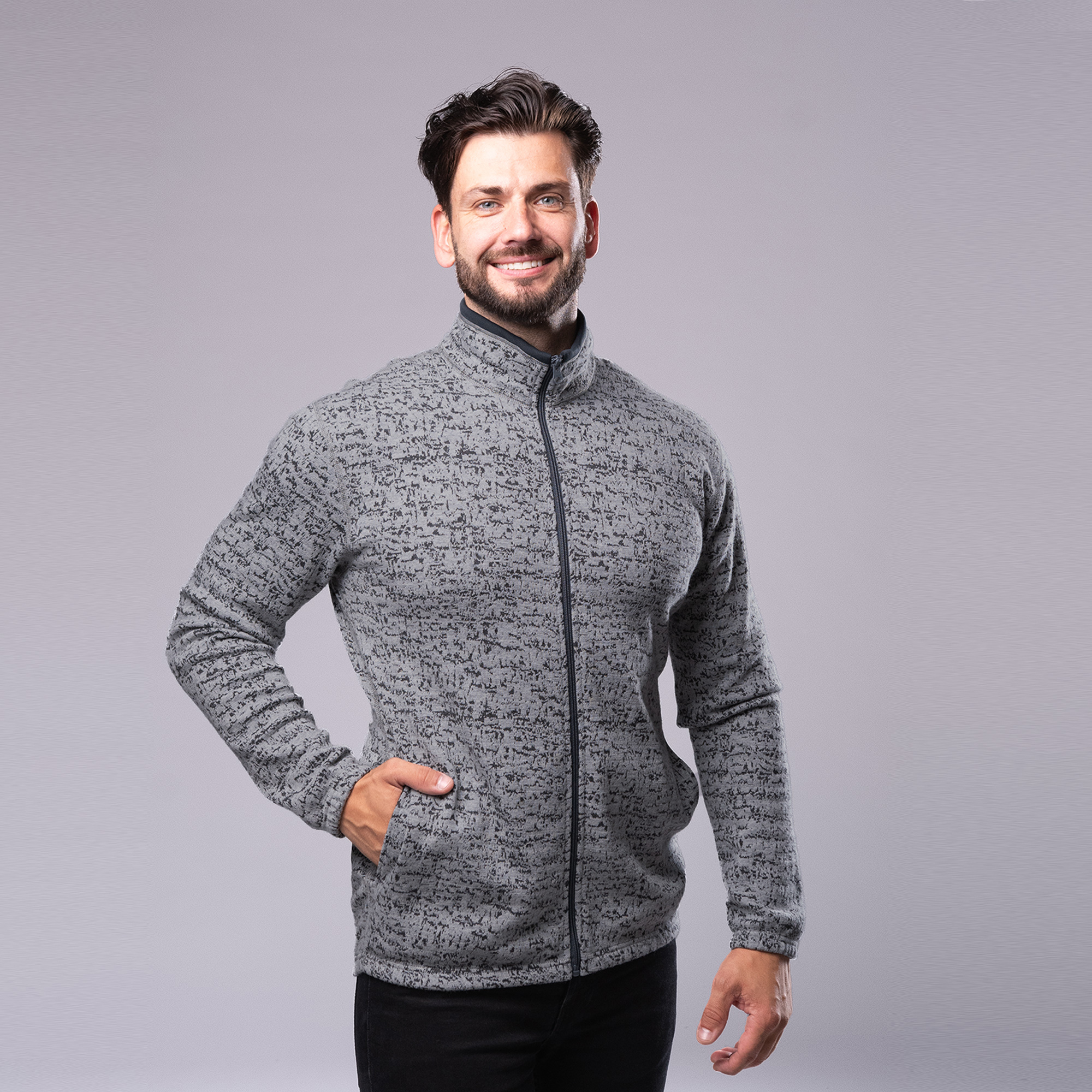 Pulover din merino cu fermoar, pentru bărbați, MERINO MOIRA MEDIUM