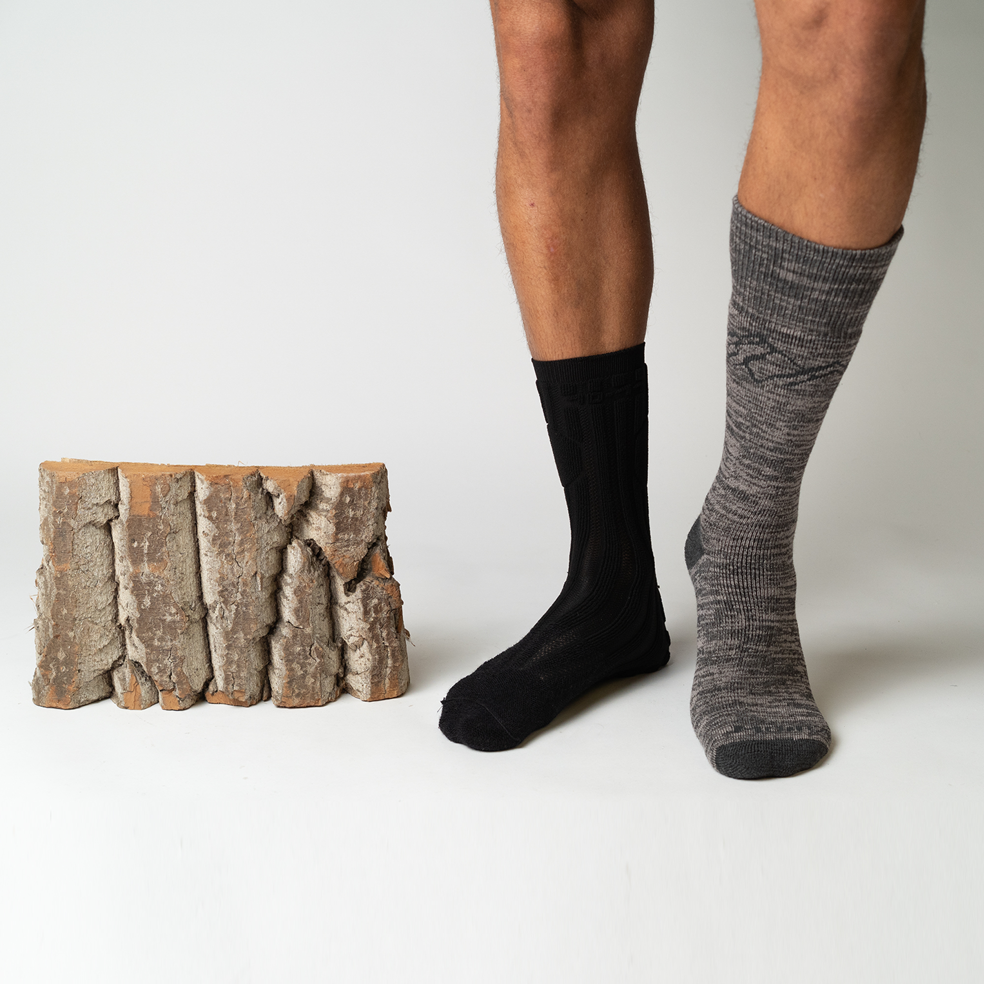 Aceste șosete foarte călduroase sunt concepute pentru condiții solicitante. Arhitectura șosetei prezintă o legătură solidă, prevăzută pe partea interioară cu o buclă densă și lungă. Buclele interioare amortizează șocurile la nivelul tălpii, fixează piciorul în încălțăminte și, datorită bunei eliminări a umidității, mențin între fibrele buclelor o cantitate mare de aer care acționează ca izolant. Vârful și călcâiul sunt întărite cu material, iar călcâiul este urmat de o zonă întărită care protejează tendonul lui Ahile. Deasupra ristului piciorului sunt aplicate benzi cu bucle elastice, care permit îndoirea confortabilă a piciorului. Cele două benzi elastice, peste ristul piciorului și sub gleznei, fixează bine șoseta pe picior. Șosetele sunt finisate cu un tiv de înălțime medie, din țesătură cu nervuri fine, dotat cu o cusătură uniformă. Construcția șosetelor permite utilizarea tuturor posibilităților tehnice ale încălțămintei moderne. În climatul deosebit de rece, se pot utiliza și inserții pentru șosete (PO/LN), care îmbunătățesc și mai mult proprietățile excelente ale acestora. Șosetele Thermo sunt însoțite de inserții, formând un set, ceea ce oferă trei variante de purtare: doar șosete, șosete cu inserție, doar inserții.