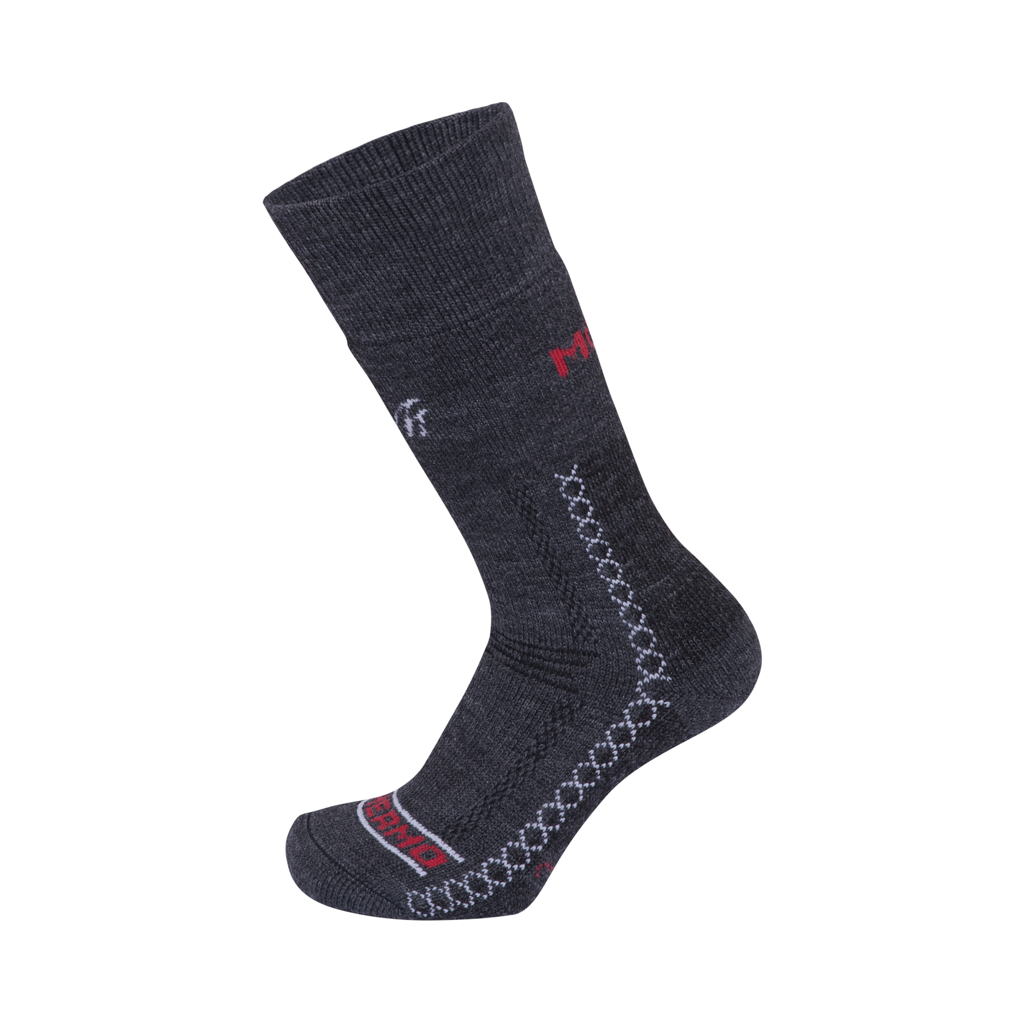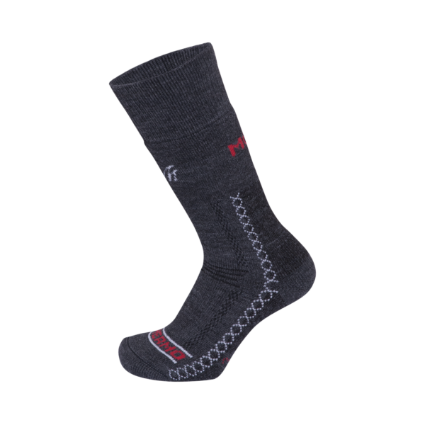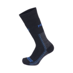 Aceste șosete foarte călduroase sunt concepute pentru condiții solicitante. Arhitectura șosetei prezintă o legătură solidă, prevăzută pe partea interioară cu o buclă densă și lungă. Buclele interioare amortizează șocurile la nivelul tălpii, fixează piciorul în încălțăminte și, datorită bunei eliminări a umidității, mențin între fibrele buclelor o cantitate mare de aer care acționează ca izolant. Vârful și călcâiul sunt întărite cu material, iar călcâiul este urmat de o zonă întărită care protejează tendonul lui Ahile. Deasupra ristului piciorului sunt aplicate benzi cu bucle elastice, care permit îndoirea confortabilă a piciorului. Cele două benzi elastice, peste ristul piciorului și sub gleznei, fixează bine șoseta pe picior. Șosetele sunt finisate cu un tiv de înălțime medie, din țesătură cu nervuri fine, dotat cu o cusătură uniformă. Construcția șosetelor permite utilizarea tuturor posibilităților tehnice ale încălțămintei moderne. În climatul deosebit de rece, se pot utiliza și inserții pentru șosete (PO/LN), care îmbunătățesc și mai mult proprietățile excelente ale acestora. Șosetele Thermo sunt însoțite de inserții, formând un set, ceea ce oferă trei variante de purtare: doar șosete, șosete cu inserție, doar inserții.