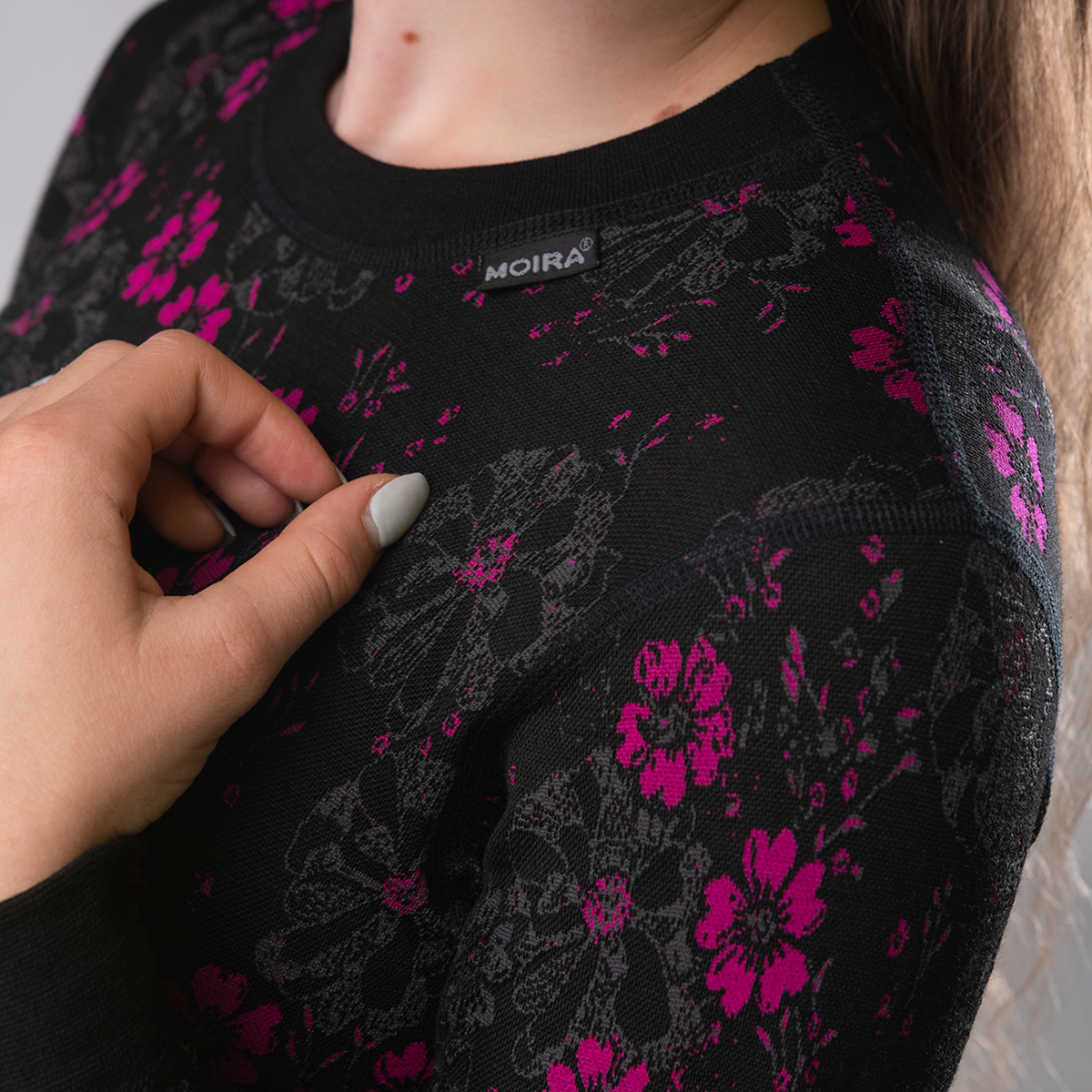 Frumos și călduros, absoarbe foarte bine umezeala. Tricotul funcțional din fire de polipropilenă Moira are o textură plăcută, asemănătoare lânii, iar Lycra îmbunătățește confortul la purtare și stabilitatea dimensională a produsului. Datorită modelului împletit, foarte impresionant, veți străluci peste tot și nici nu veți răci. O puteți purta direct pe corp.